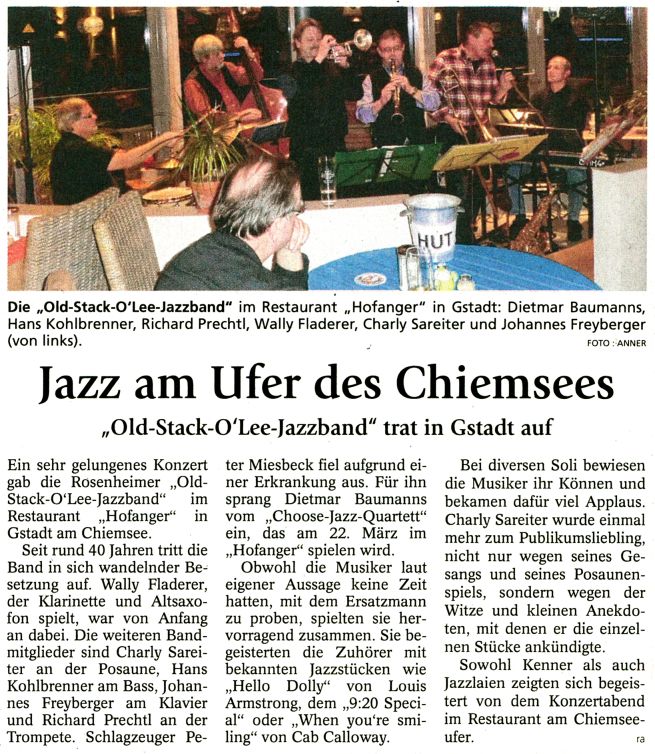 Konzertkritik im OVB vom 28.02.2013 zum Konzert im Cafe Hofanger in Gstadt am 22.02.2013