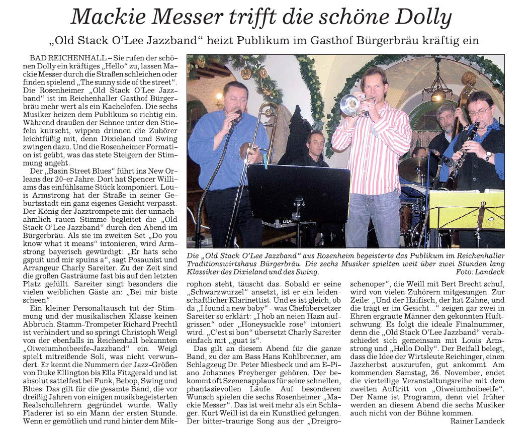 Konzertkritik im Reichenhaller Tagblatt vom 22.11.2005 zum Konzert im Bürgerbräu Bad Reichenhall am 19.11.2005